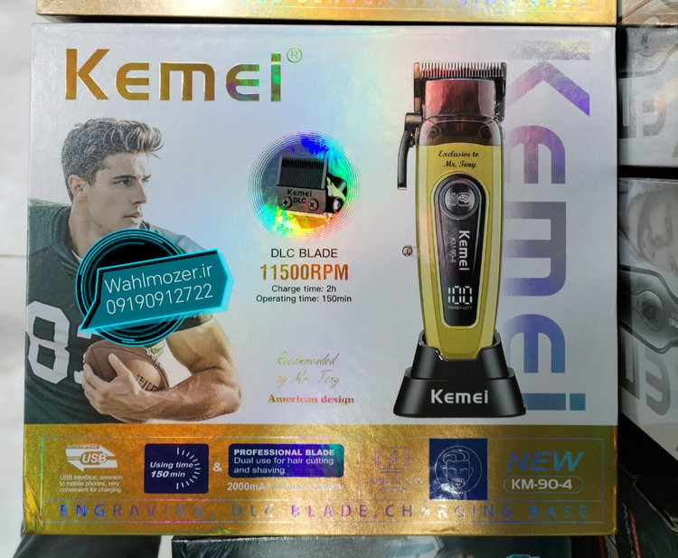 ماشین اصلاح حرفهای Kemei KM-90-4 با تیغه DLC و موتور قدرتمند 11500RPM، مناسب برای آرایشگران و استفاده خانگی. دارای باتری 2000mAh، شارژ USB، نمایشگر LED و طراحی آمریکایی. خرید آنلاین از Wahlmozer.ir با ارسال سریع و ضمانت اصالت کالا.