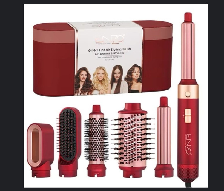 برس حرارتی ۶ کاره ENZO مدل EN-8149 با سریهای متنوع برای خشککردن، صافکردن، فر کردن و حجمدهی مو. انتخابی حرفهای برای زیبایی مو در خانه و سالن.
